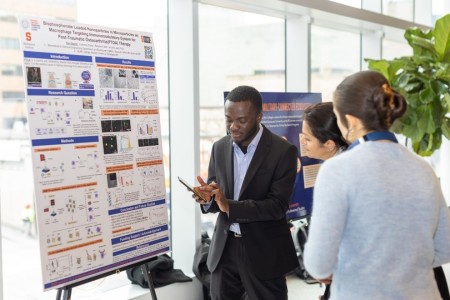 | The inaugural Voices of Service Symposium poster event was hosted by the D'Aniello Institute for Veterans and Military Families (IVMF) and the Office of Academic Affairs on April 10, 2025. This event was designed to spotlight innovative work related to veteran and military-connected populations being conducted at and in partnership with Syracuse University. Featured posters focused on ongoing and planned research, curriculum development, program initiatives, and community engagement efforts. |
